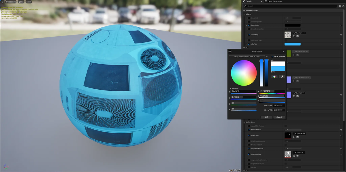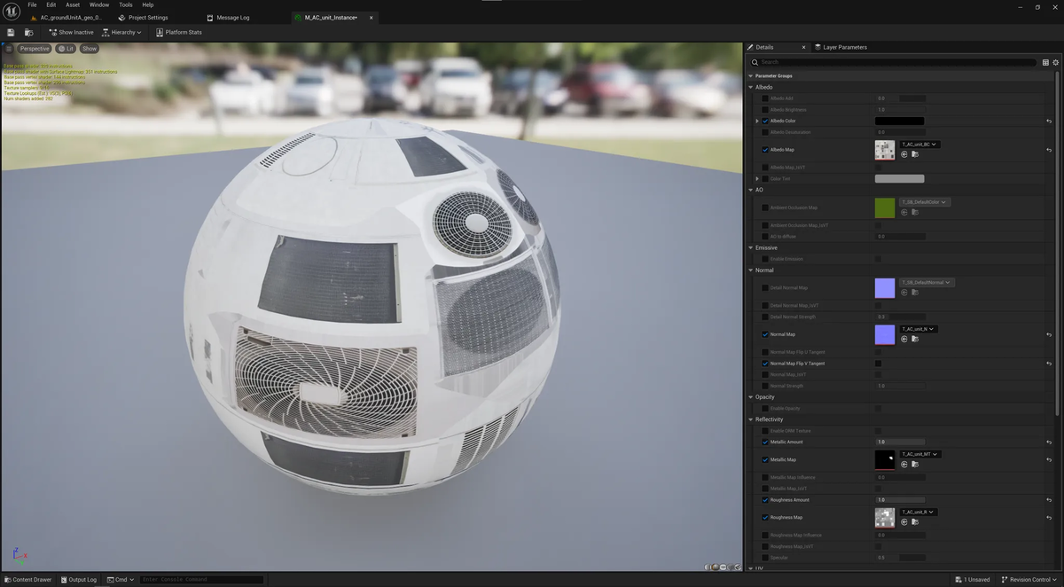 今回変換した、第一回で紹介した室外機アセットのマテリアルは、Sbro_PBRのMaterial Instanceになりました。
